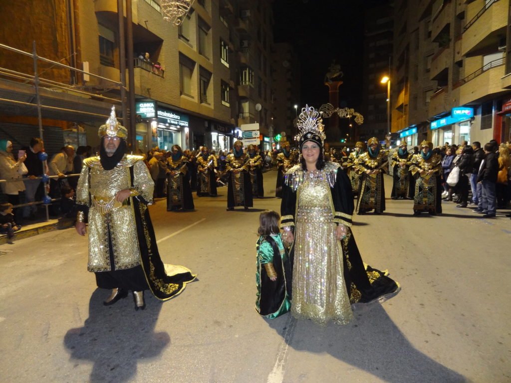 Grupo Moro creado en 2002, participando por primera vez en el Gran Desfile Parada celebrado el día 24 de Noviembre de ese año. Representa el inicio de la dominación musulmana y la implantación de la cultura islámica en el año 713, con la llegada a Lorca de los Bereberes. En sus filas, el primer emir árabe del Al-Andalus (príncipe de Córdoba, de Granada, de Jaén, de Lorca, de la Vega del Segura, de Valencia y de Tarragona) Abd Al Aziz Ibn Musá, nombrado valí de la Península Ibérica, firma el Pacto de Tudmir con el conde visigodo Teodomiro. El Pacto establecía que Lorca quedaría en manos islámicas junto a otras seis ciudades. Además, no se les reduciría a esclavitud; no serían separados de sus mujeres ni de sus hijos;  se respetaría sus vidas, no se les daría muerte y no se quemarían sus iglesias, ni tampoco se les prohibiría el culto de su religión. Le acompaña su esposa, la sultana emir Egilona, viuda de Don Pelayo, último rey visigodo, recibiendo el sobrenombre de “Tolerante con los cristianos”.